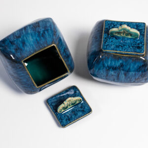 Całość przedmiotu pokryta błyszczącym, efektowym szkliwem w kolorze