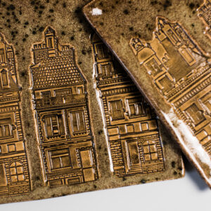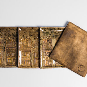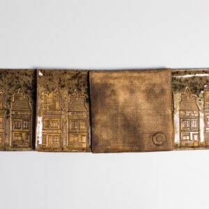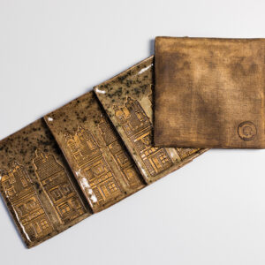 Zestaw czterech talerzyków deserowych z motywem kamieniczek.