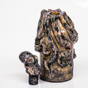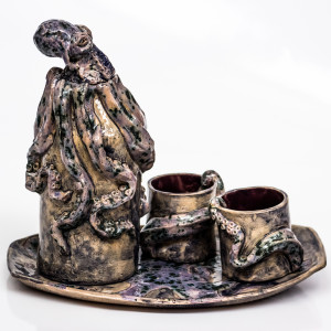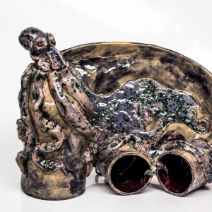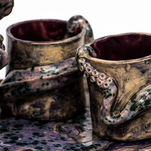 Unikatowy, ręcznie rzeźbiony i rytowany zestaw z motywem ośmiornicy.