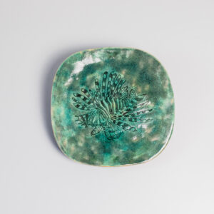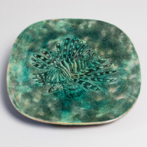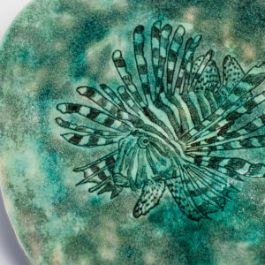 z ozdobnym elementem w postaci wyrytowanego motywu ryby skrzydlicy.