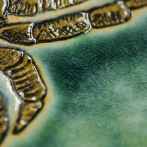 Szkliwo turkusowe z efektem spękań. Spód ciemny, tleniony.